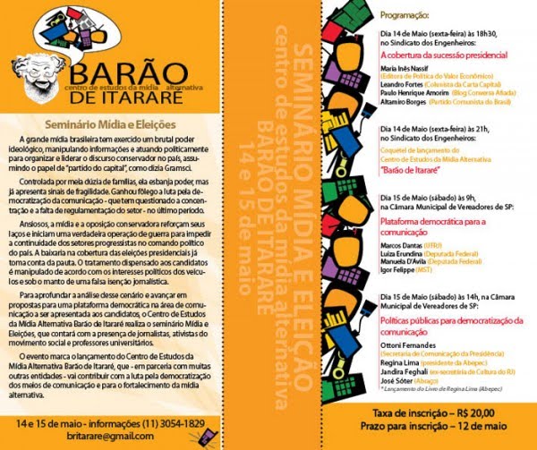 Reproduzo artigo do professor Venício A. de Lima, publicado no Observatório da Imprensa: Organizada em comemoração ao Dia Mundial da Liberdade de Imprensa (3 de maio) e com o tema "Mídia e Democracia Representativa", realizou-se na Câmara dos Deputados, na terça-feira (4/5), a 5ª Conferência Legislativa sobre Liberdade de Imprensa. O evento foi promovido em parceria com a Associação Nacional dos Jornais (ANJ), a Associação Brasileira de Emissoras de Rádio e Televisão (Abert), a Associação Nacional de Editores de Revistas (Aner) e a Escola Superior de Propaganda e Marketing (ESPM) e contou com a presença de deputados, jornalistas e luminares do pensamento empresarial.