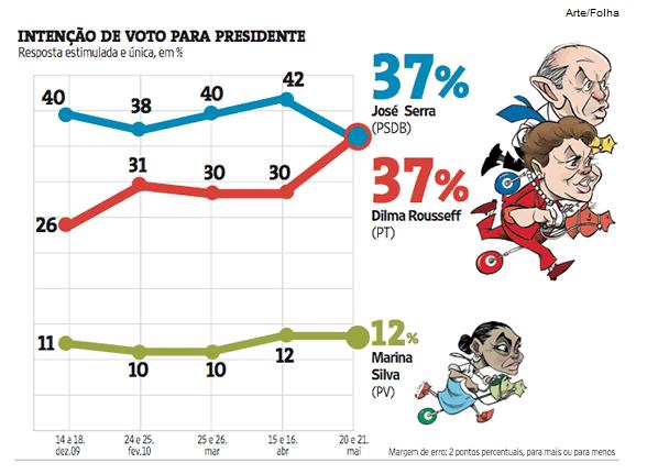 Em 15 de abril, o Data-da-Folha deu Serra 42, Dilma 30.