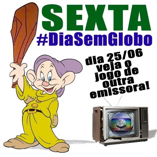Na esteira deste episódio, um movimento espontâneo na internet ganhou milhares de adeptos ao propor o “diasemglobo”, defendendo o boicote à emissora na transmissão do jogo entre Brasil e Portugal, nesta sexta-feira (25). Além dos baixos índices de audiência no Ibope, a TV Globo está amargando péssimas notícias na Copa. Primeiro foi o movimento “Cala boca Galvão”, contra as abobrinhas ditas pelo seu principal âncora esportivo. Agora, é o “diasemglobo”. Haja coração!