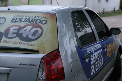 Mais engraçada é a situação de Sergio Guerra. O presidente nacional do PSDB é candidato a deputado federal em Pernambuco. Mas não é que apareceu um carro com adesivo do tucano ao lado de adesivo do Eduardo Campos (PSB) e da Dilma! E o Serra? Sumiu…