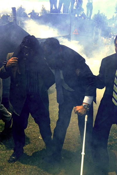 Desde el Hospital de la Policía, a donde acudió luego de ser agredido durante su visita al Regimiento Quito, tras haber sido afectado por una bomba lacrimógena, el Jefe de Estado manifestó su profundo rechazo frente a las acciones emprendidas por un sector de los uniformados, quienes aspiran a desestabilizar al régimen basados en su oposición a los vetos anunciados a la Ley de Servicio Público.