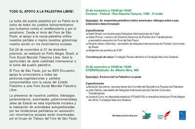 O Dia Internacional de Solidariedade ao Povo Palestino foi marcado por uma grande mobilização pelas ruas de Porto Alegre (RS) nesta quinta-feira (29). A atividade foi a abertura oficial do Fórum Social Mundial Palestina Livre, que ocorre nesta semana na capital gaúcha.