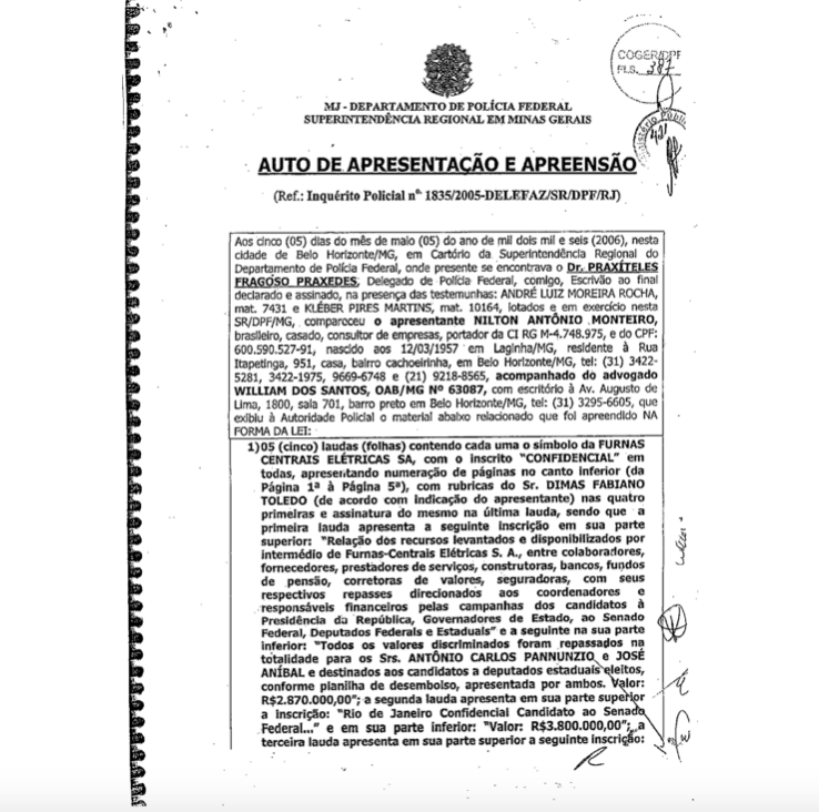 Depois disso, o inquérito desapareceu num trânsito entre a Delegacia e o Tribunal de Justiça do Estado de Minas Gerais. Peças foram reapresentadas, na remontagem dos autos, como manda a lei, mas a versão final não inclui o depoimento bombástico desse advogado, além de outros documentos considerados importantes.