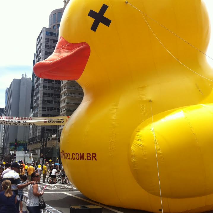 A segunda figura estava no meio da galera, impávido: um pato inflável, cortesia da criatividade do presidente da Fiesp Paulo Skaf, o Caveira, que numa entrevista ao Estadão cravou que “mudança pode ser por impeachment, renúncia ou outra forma”.
