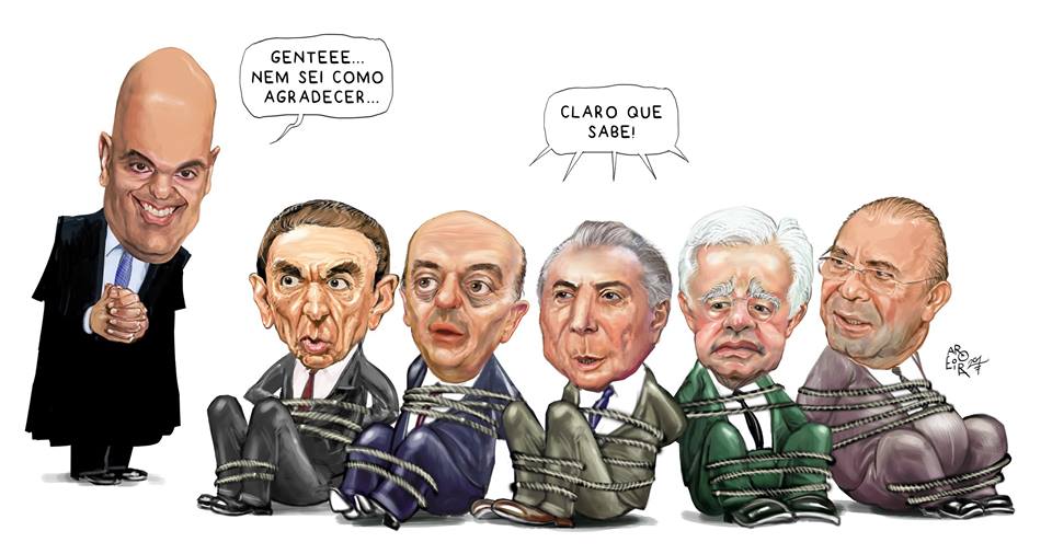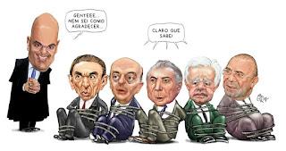 Por 21 votos a sete, a Comissão de Constituição e Justiça (CCJ) do Senado aprovou na noite desta terça-feira (21) a indicação do fascista Alexandre de Moraes para o cargo de ministro do Supremo Tribunal Federal (STF). O covil golpista de Michel Temer festejou a decisão, que deve ajudar a "estancar a sangria" das investigações de corrupção no país. No circo montado da "sabatina", os falsos moralistas cumpriram a contento o seu patético papel. Agora, a indicação do "guarda-costas" dos bandidos será submetida a aprovação do plenário do Senado, onde ele precisa do apoio de 41 dos 81 senadores. A votação secreta, assim como foi na CCJ, será realizada ainda nesta quarta-feira.