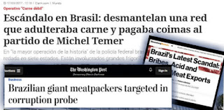 A midiática Operação “Carne Fraca”, que atingiu mais um setor de ponta da economia nacional e que produzirá efeitos destrutivos na balança comercial e na geração de empregos no país, também caiu como uma bomba no colo do usurpador Michel Temer. Recém-indicado para o Ministério da Justiça, o falso moralista Osmar Serraglio, fiel aliado do presidiário Eduardo Cunha, já está em processo de sangria e poderá virar em breve o oitavo ministro defecado do covil. Numa das gravações vazadas pela Polícia Federal, o peemedebista de Santa Catarina tenta proteger o dono de um frigorífico flagrado em mutretas. O áudio desmascara mais um ativo participante do “golpe dos corruptos” que depôs a presidenta Dilma e alçou ao poder uma quadrilha mafiosa.