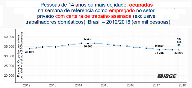 O IBGE acaba de divulgar os últimos números do mercado de trabalho, atualizado até janeiro deste ano.