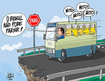 Quando o coronavírus já causava centenas de mortes pelo mundo, o "capetão" disse que era só uma "gripezinha". Depois, apresentou um projeto que suspendia por quatro meses o salário do trabalhador e concedia uma merreca de R$ 200 aos informais. Agora faz demagogia na TV. Farsante! Verme!